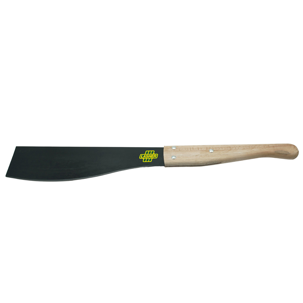 Introducing the Lasher Cane Knife Shaya WH Straight, a versatile and durable tool designed for general purpose cutting. This right-handed knife features a straight, high-quality carbon steel blade that has been hardened and tempered for maximum performance.